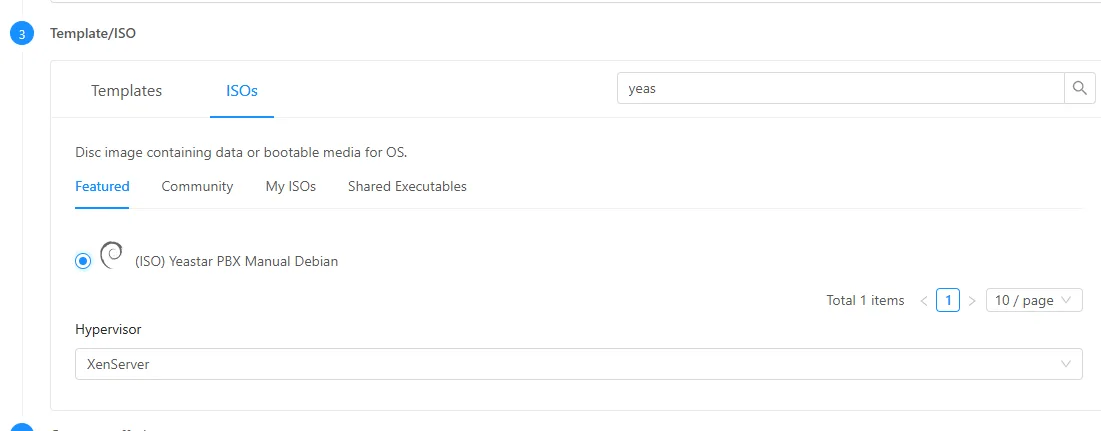 Para instalar o Yeastar PBX Manual, selecione ISO, busque por Yeastar e selecione “(ISO) Yeastar PBX Manual Ubuntu”;